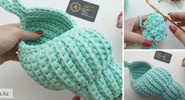 Whether you’re storing yarn, organizing cosmetics, showcasing small towels in the bathroom, or simply adding a handmade touch to a shelf or desk, the shell stitch basket adds charm and softness to your space.