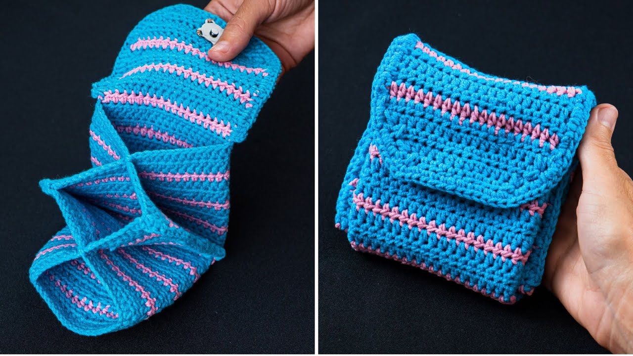 Looking for a crochet project that’s both fun to make and wonderfully functional? This folding pouch is a perfect choice. Its simple construction starts with a single flat piece that you then fold and seam to create a unique accordion-style body. The two-tone stripes add a pop of color and a subtle texture that elevates the entire design.