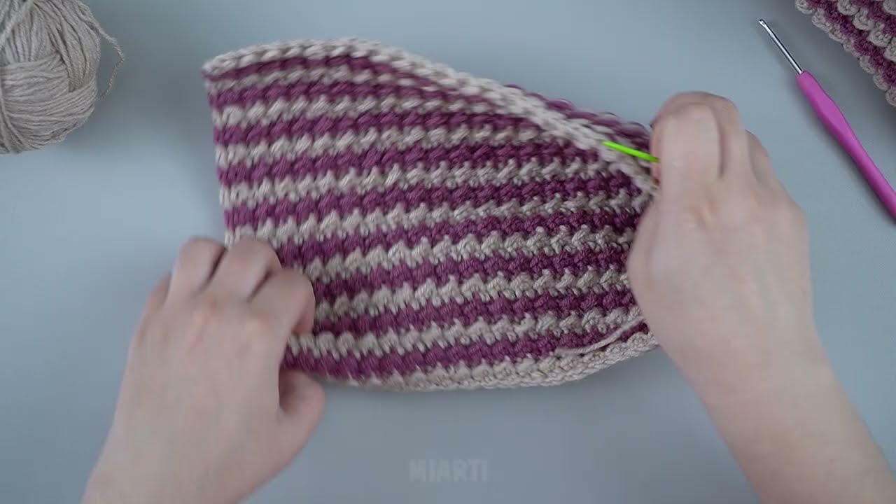 2. Work single crochet evenly around the top edge to tidy it up.