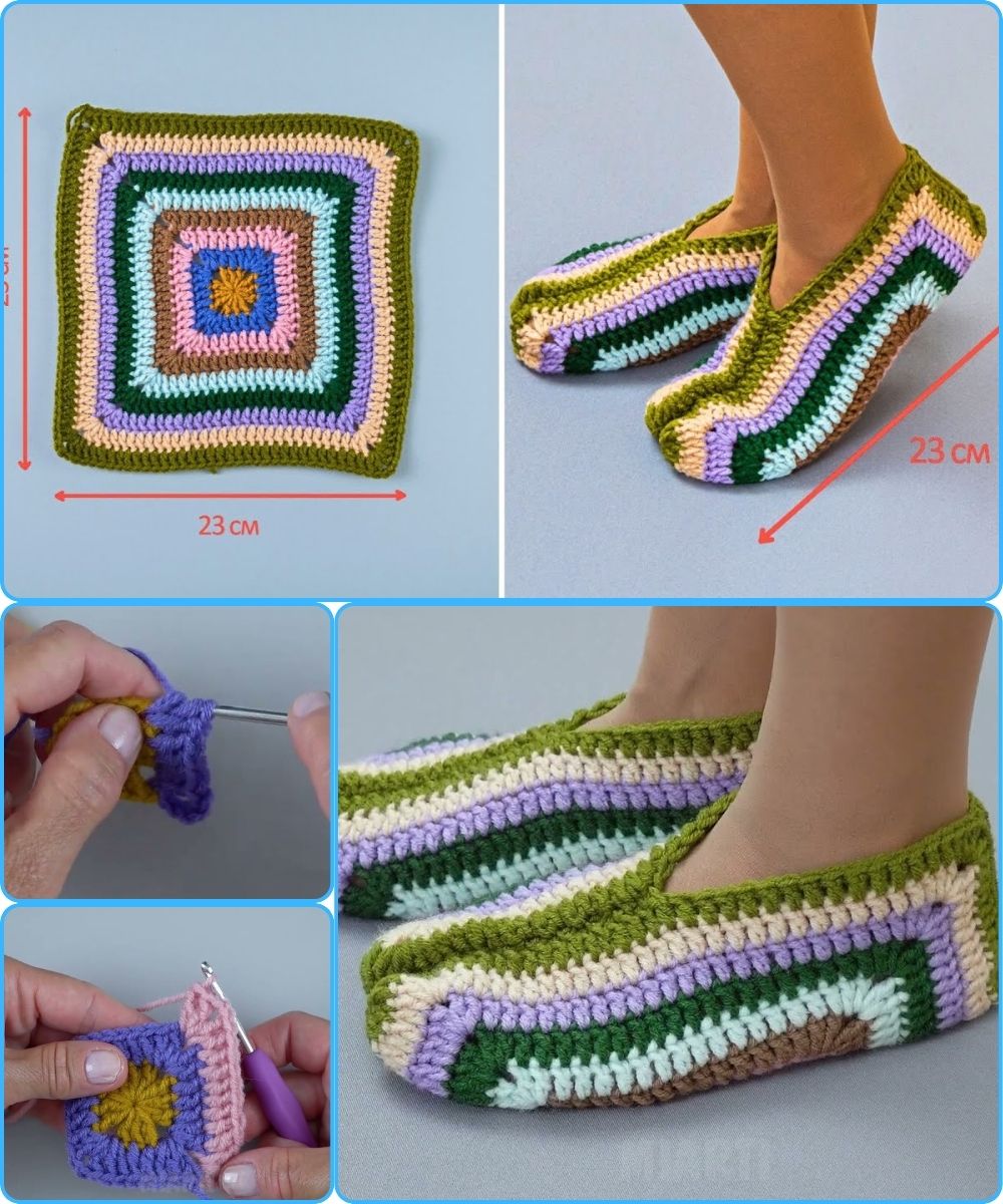 Here is a clear, beginner-friendly, and detailed guide on How to Make Crochet Granny Square Slippers Easily. You can use any basic granny-square pattern you like — the magic is in the assembly!