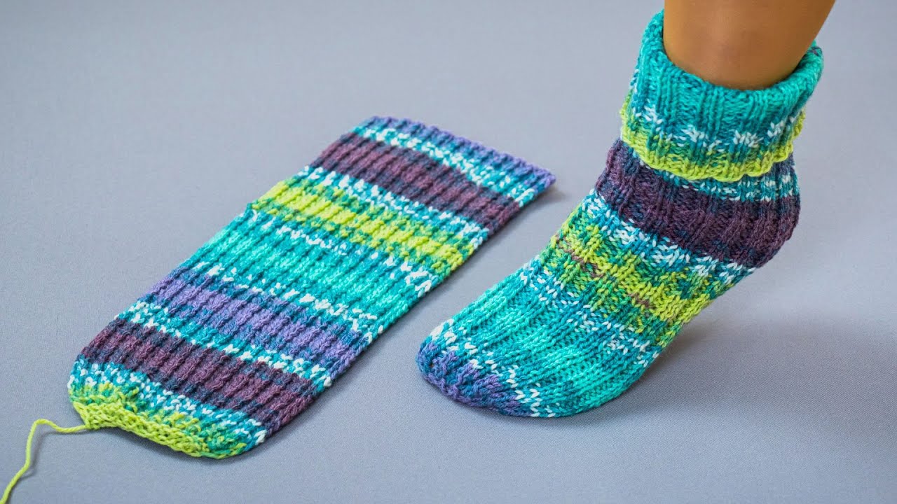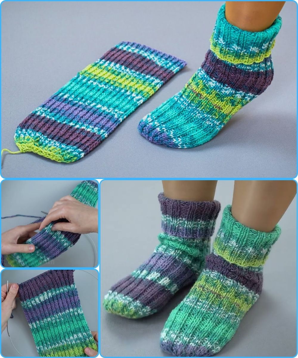 🧦 How to Make the Easiest and Fastest Knitted Socks Using Only 2 Needles