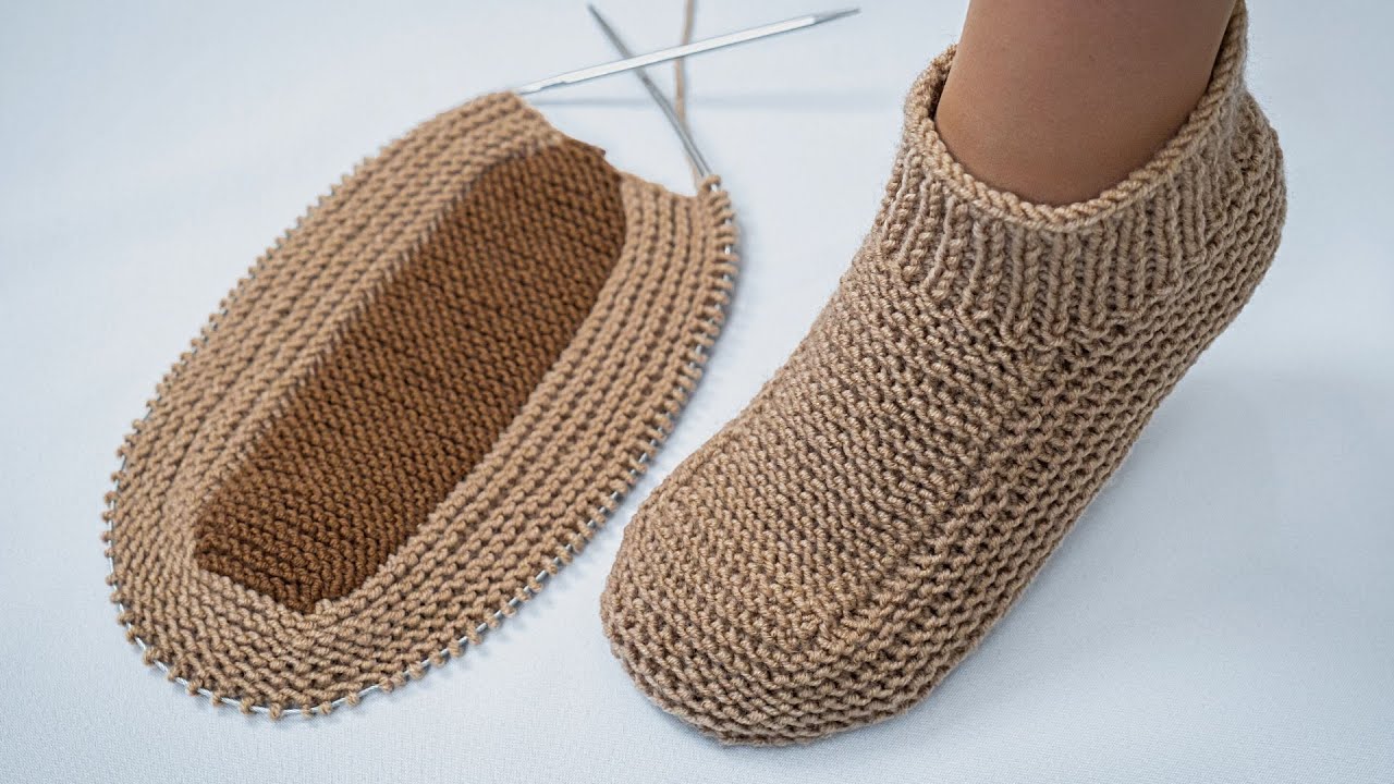 🧶 How to Knit Slippers Without a Sole Seam Using Only 4 Stitches