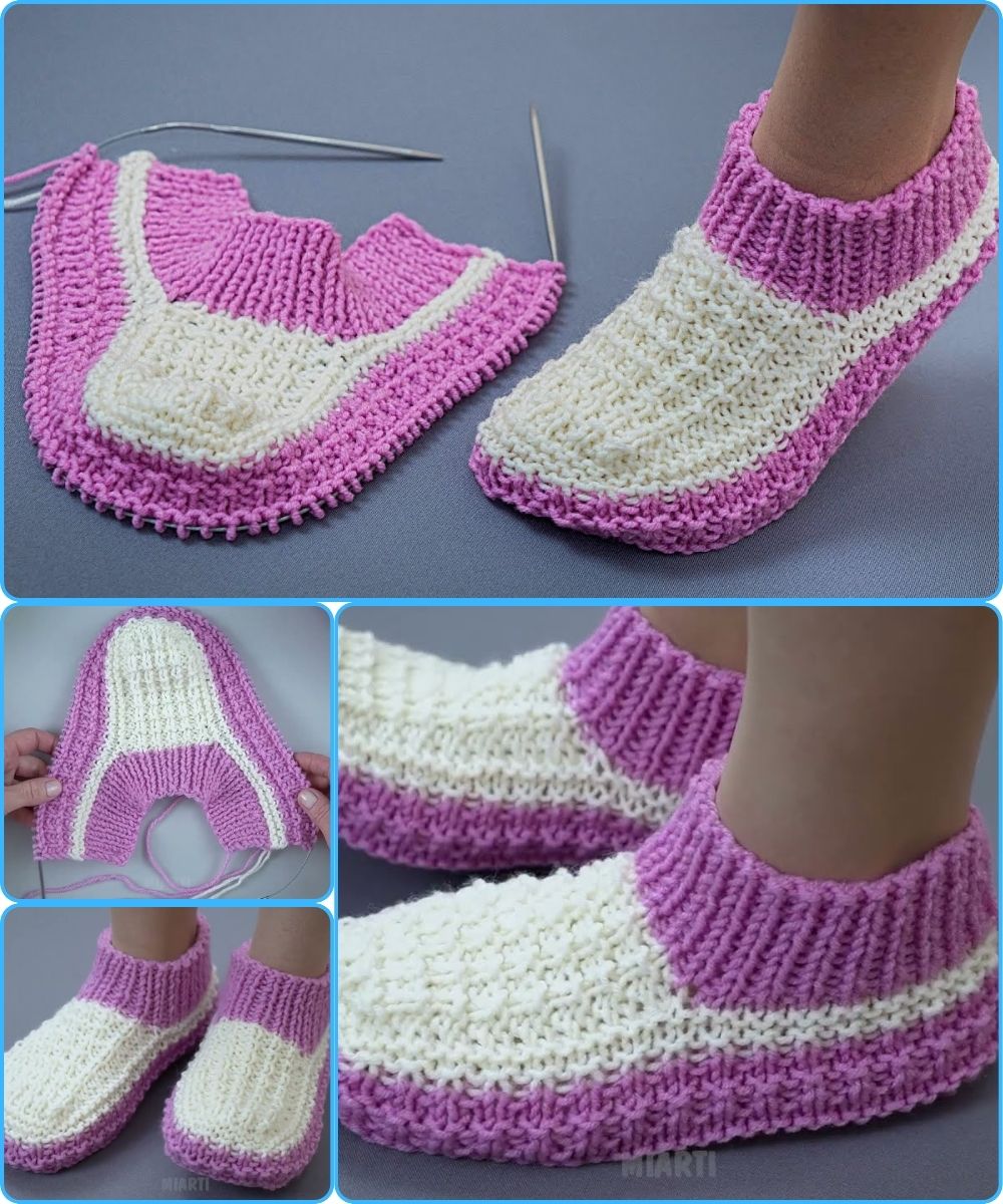 Here is a clear, beginner-friendly, detailed guide on how to knit seamless slippers “Orchid”—a popular construction where the sole has no seam, the shaping is easy, and the result looks elegant and flower-like around the instep.