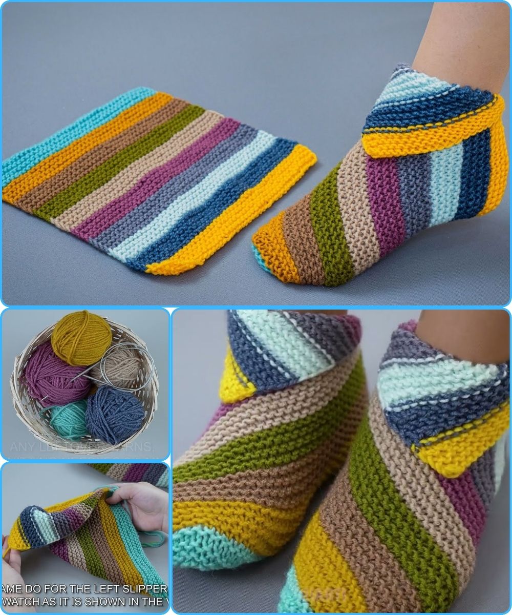 Here is a clear, friendly, detailed guide on how to make bright knitted slippers out of leftover yarns. It’s simple, quick, beginner-friendly, and great for using scrap yarn of any weight.