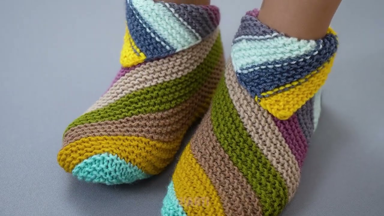 🧶 How to Make Bright Knitted Slippers from Leftover Yarns (Super Simple & Fast!)