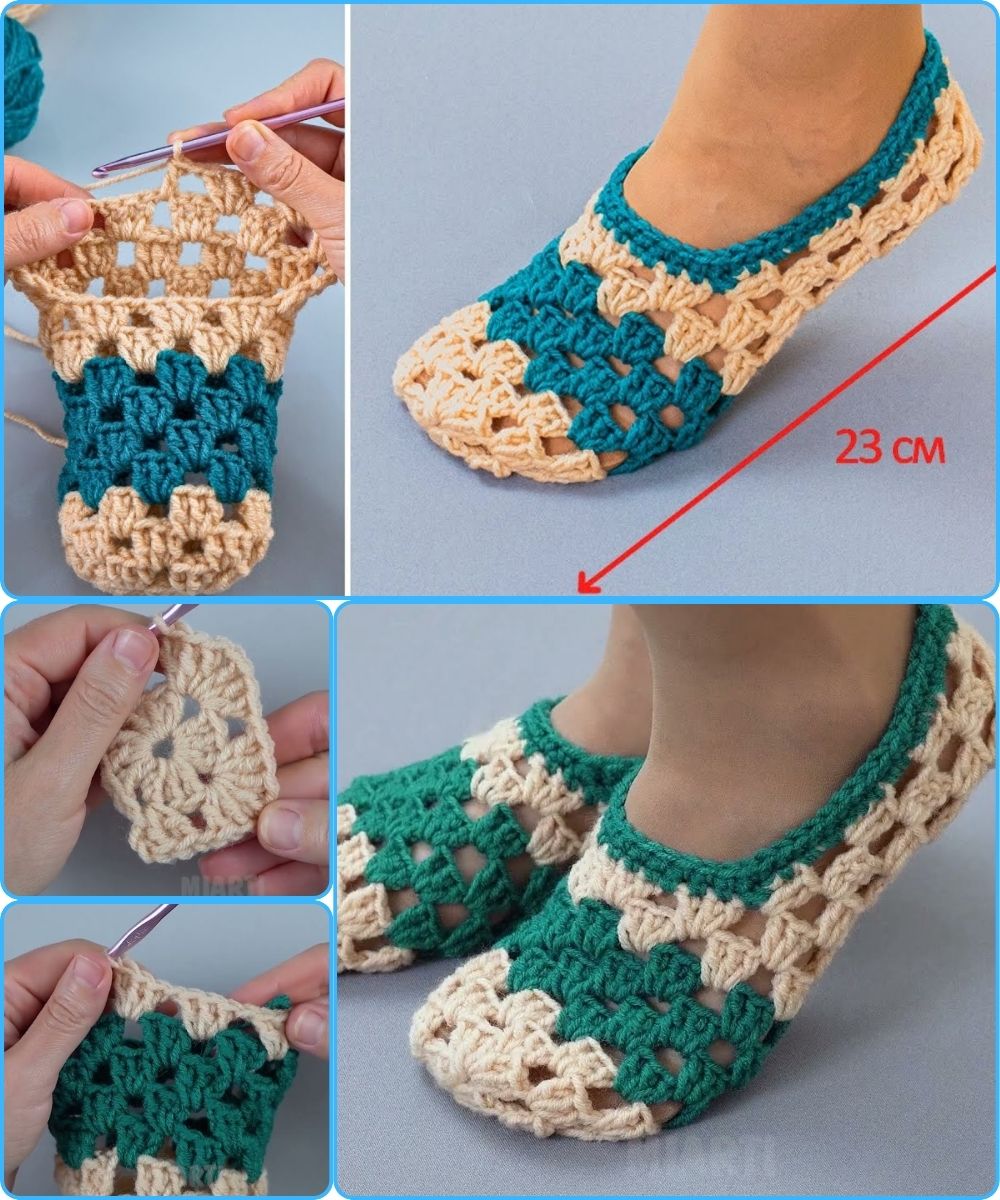 🧶 How to Make Quick and Easy Crochet Granny Square Slippers