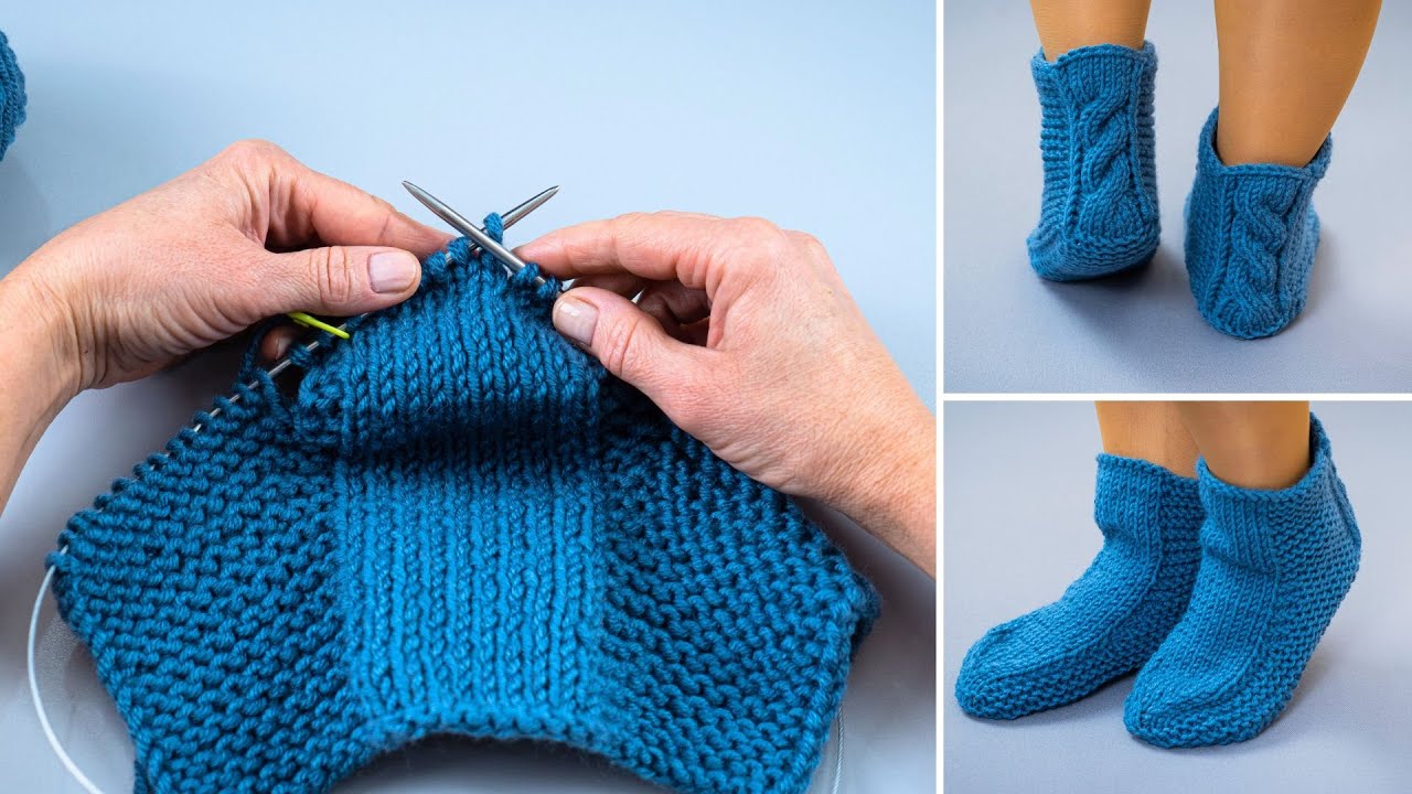 🧶 How to Make Slipper Socks on 2 Needles — No Seam, Super Simple!