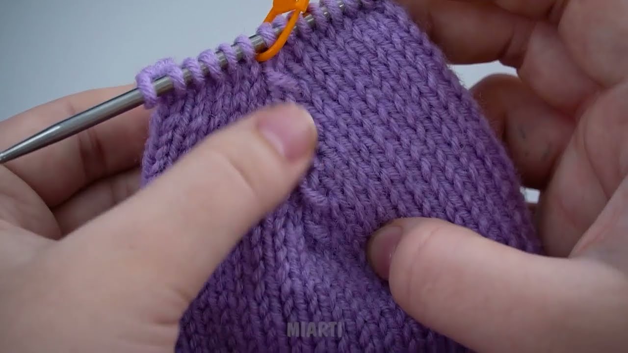 The heel is fitted with short increases; the toe is shaped by decreases.