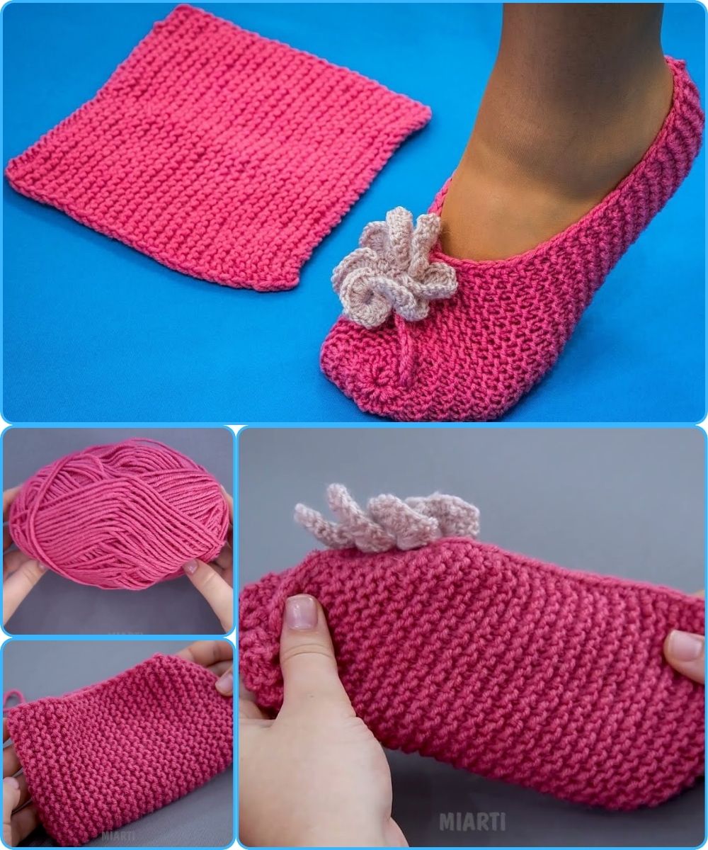 Here’s a clear, beginner-friendly, detailed guide for making super easy knitted slippers from a simple square using only basic knitting needles. These are sometimes called “grandma slippers” because they’re so quick and clever!