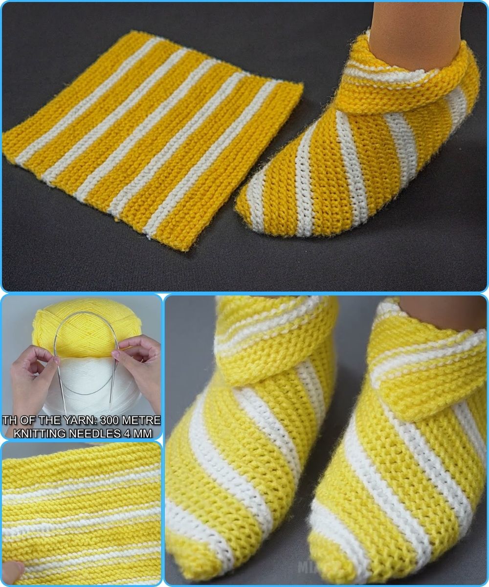 Here is a clear, detailed, beginner-friendly guide for making simple knitted slippers from a square using two straight knitting needles. This method is famous because it’s easy, fast, and works for any size.