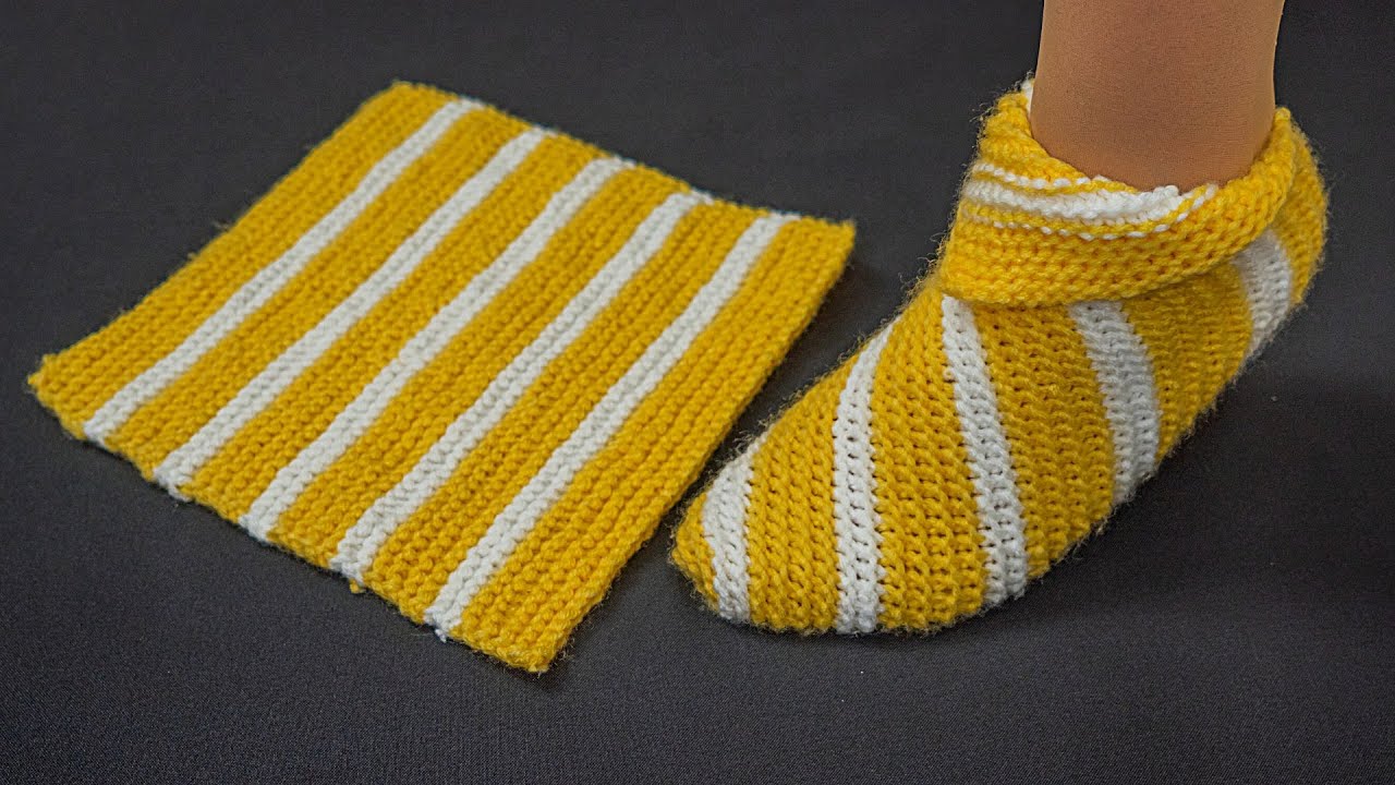 🧶 How to Make Simple Knitted Slippers From a Square (Beginner-Friendly!)