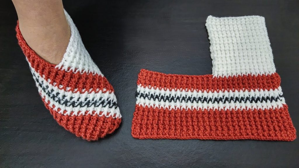 - The textured look on the bottom part of the slipper is created using front post and back post double crochet stitches.