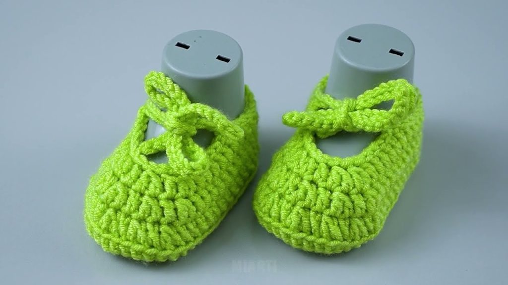 These booties are worked in three main parts: the sole, the body, and the bow. The sole is crocheted in the round, and the body is built directly on top of it. The bow is a separate piece that is then sewn on.