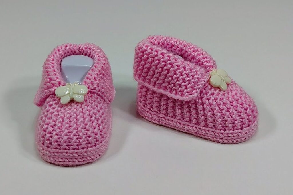 Wrap tiny feet in warmth and handmade love with these charming knitted baby booties! Featuring a beautiful garter stitch texture that’s soft and squishy, a cozy fold-over cuff, and a sweet decorative butterfly button, these booties are both adorable and practical. They make a perfect gift for a baby shower or a lovely addition to your own little one’s wardrobe.