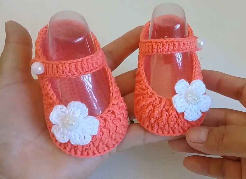 Get ready to stitch up the most precious little shoes for tiny feet! These adorable peach-colored crochet Mary Janes, complete with a dainty strap and a sweet white flower embellishment, are the epitome of handmade charm. They’re perfect for any special occasion, a thoughtful baby shower gift, or simply to add an extra touch of sweetness to a baby’s everyday outfit!