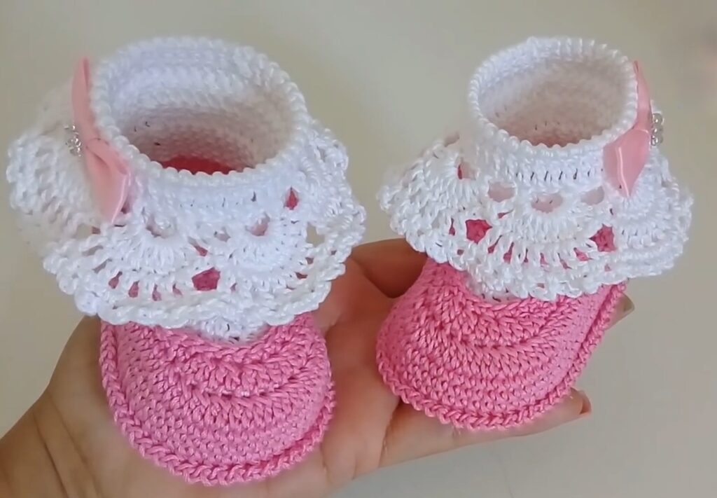 Prepare to melt hearts with these absolutely enchanting crochet baby booties! Featuring a cozy pink foot and a stunning white lacy ruffle cuff, complete with a dainty bow, these booties are the epitome of delicate charm. They’re perfect for baby showers, special occasions, first photos, or simply keeping tiny toes warm and stylish!