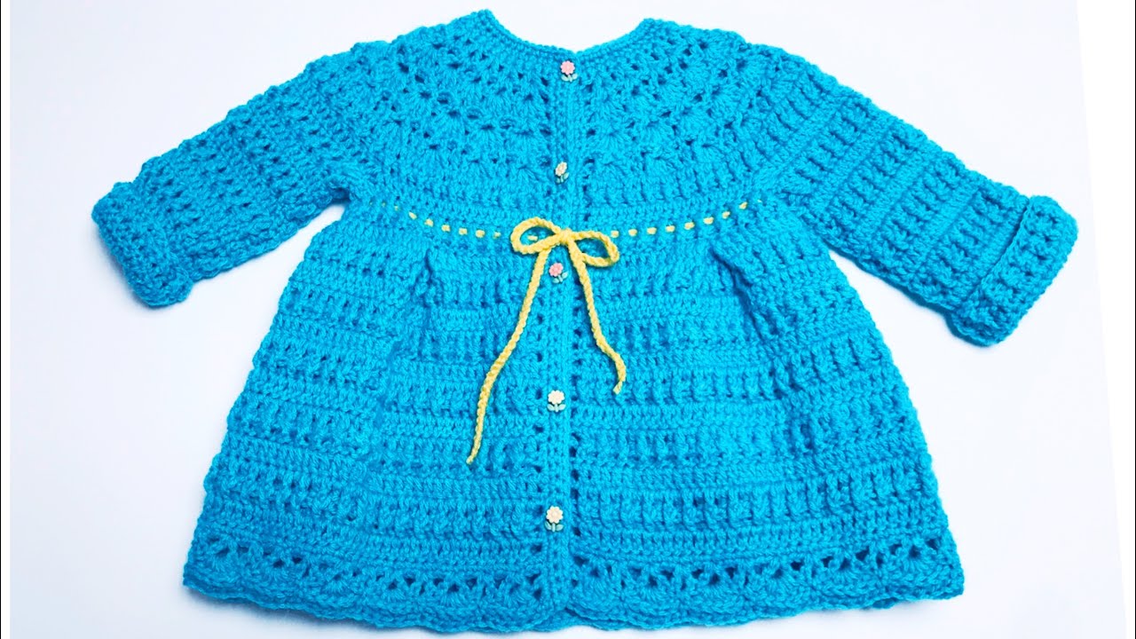 Welcome to our crochet blog, where we’re creating beautiful things for the little ones we love! Today’s project is a charming Sapphire Shells Baby Coat, a delightful, top-down crochet coat with a textured shell stitch bodice and a flowing skirt. This pattern is designed to be detailed and long, making it perfect for an intermediate beginner ready to tackle a special garment. The coat features a circular yoke, a textured body, and a sweet drawstring waist with a decorative accent.