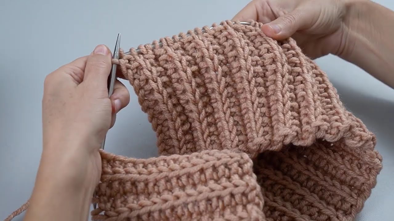 Chunky yarn: Makes the snood quicker to knit and extra cozy.