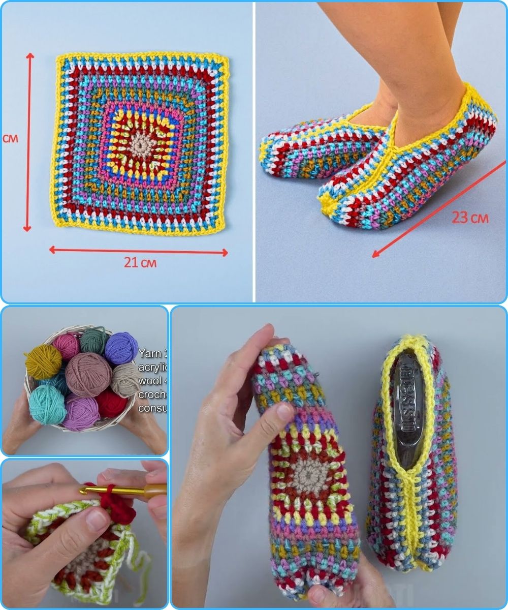 How to Make Crochet Granny Square Slippers Easily
