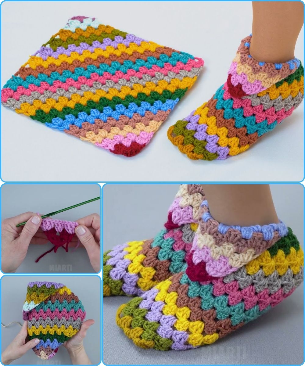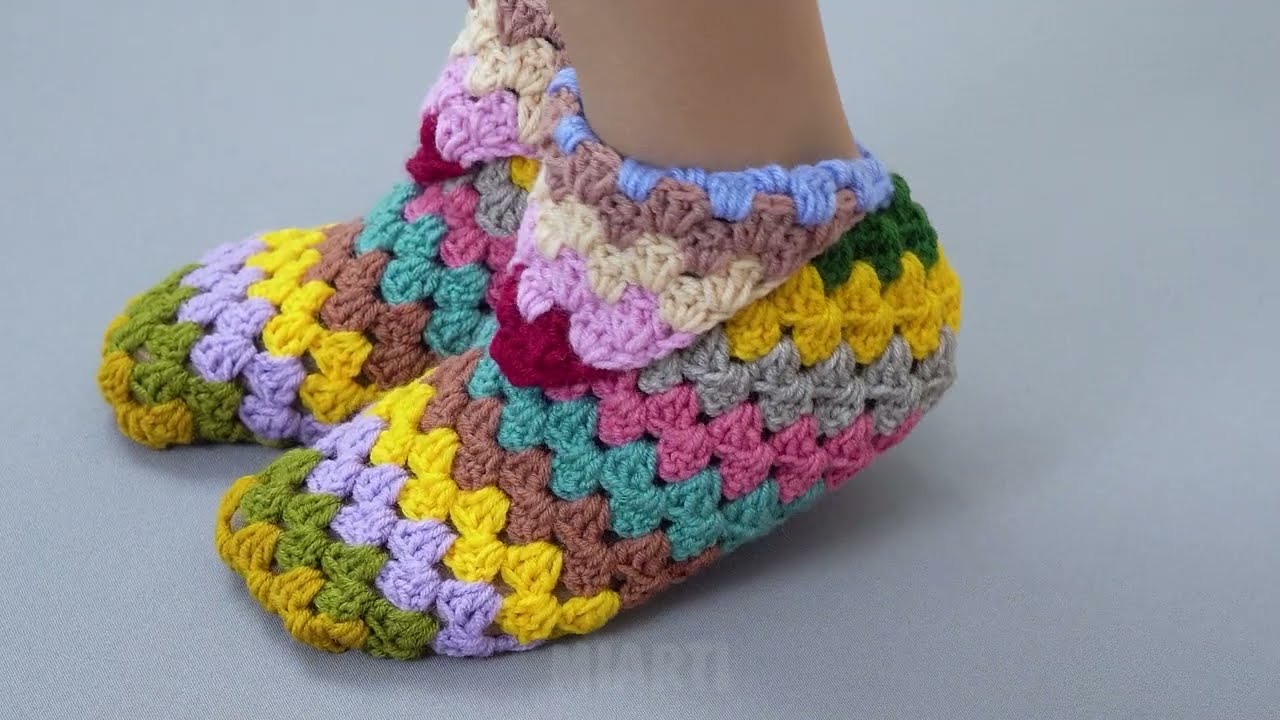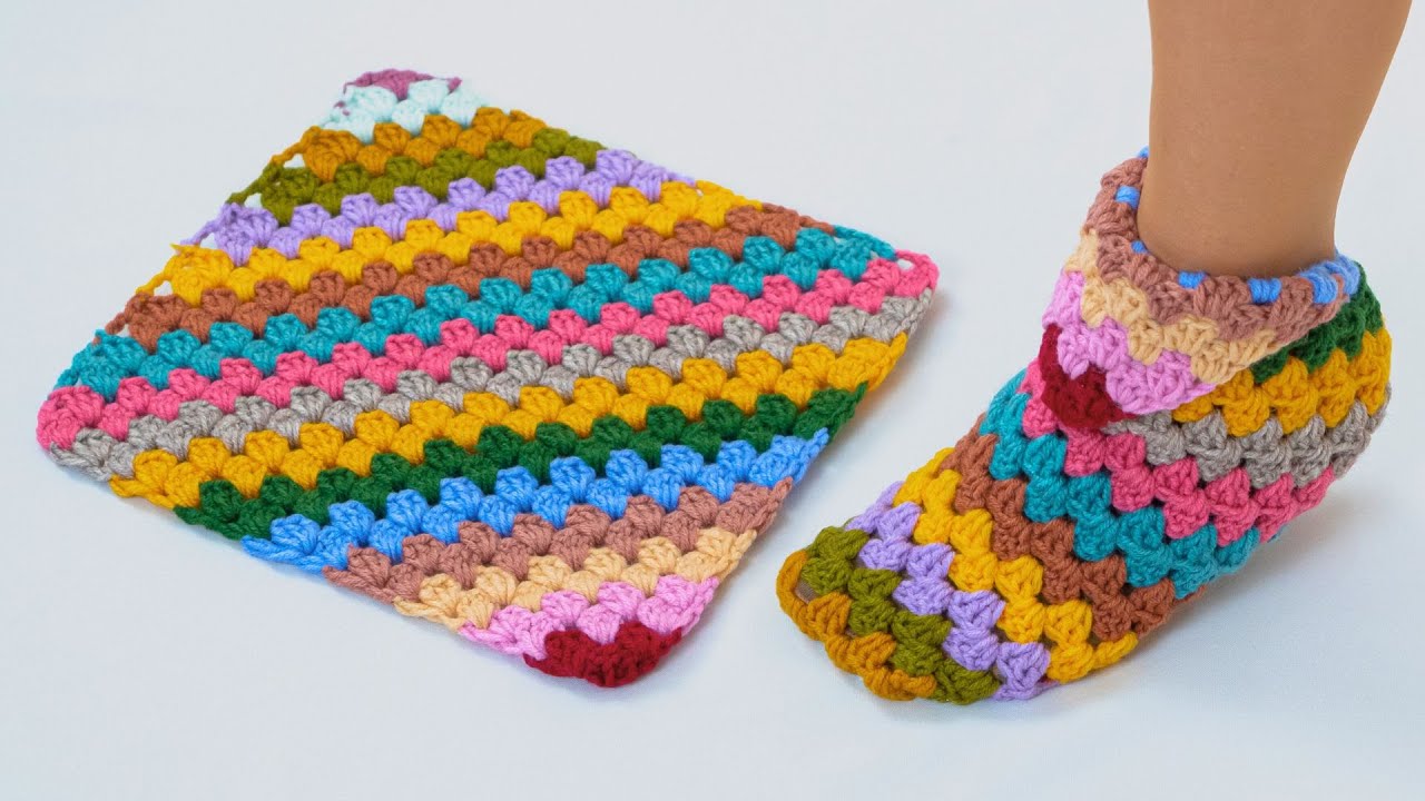 These slippers are beginner-friendly and use the classic granny square pattern.