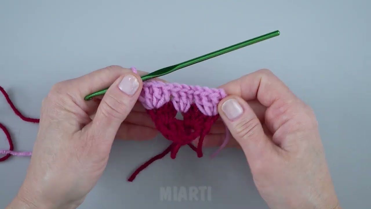 In each remaining corner, work (3 dc, ch 2, 3 dc).