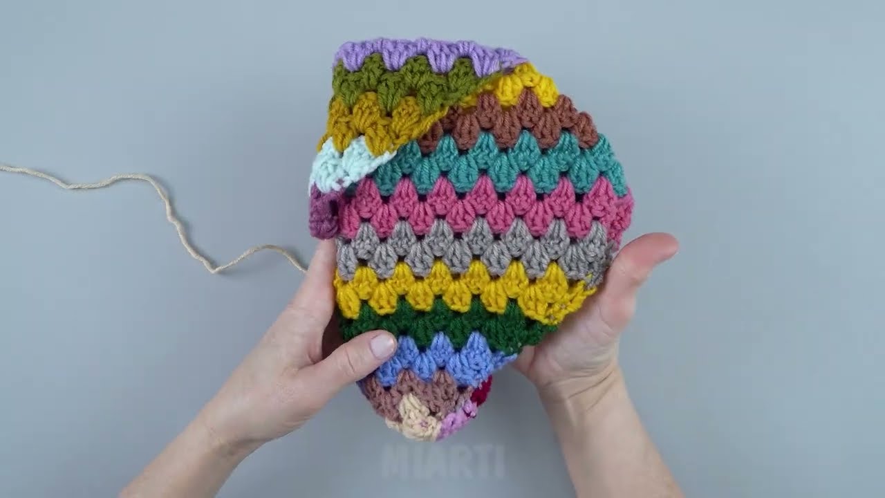 Each slipper is made from two granny squares, so you’ll need four squares total for one pair.