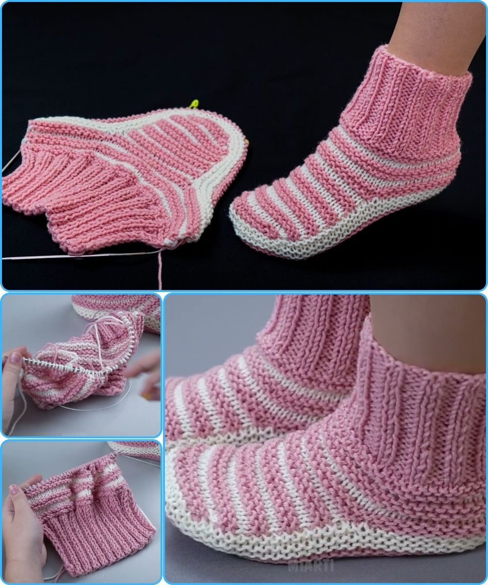 How to Make Comfortable Slippers / Socks on 2 Knitting Needles