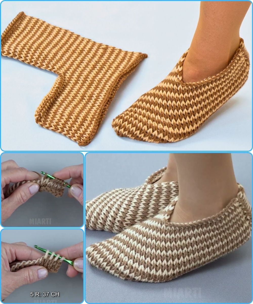 How to Crochet One-Piece Tunisian Crochet Slippers