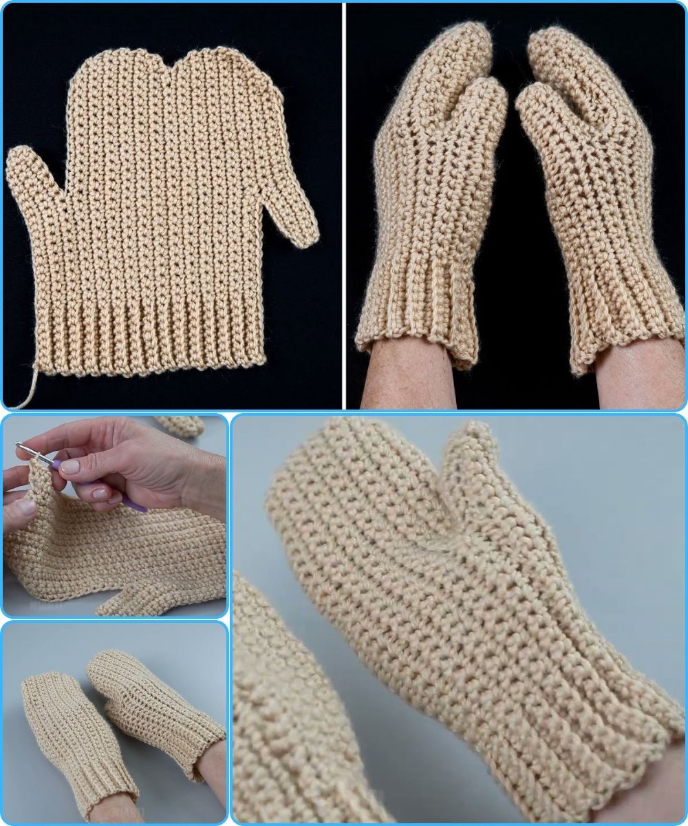 Here’s a simple, beginner-friendly guide you can use to explain how to crochet mittens using just one swatch. This method is great because it avoids complicated shaping and works up fast.