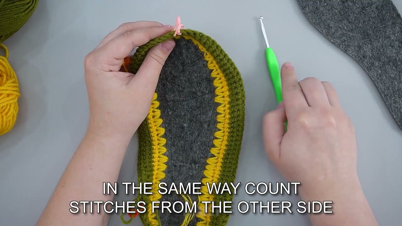 ✅ Tip: Place stitch markers at the ends of the sole to remember where to increase each round.