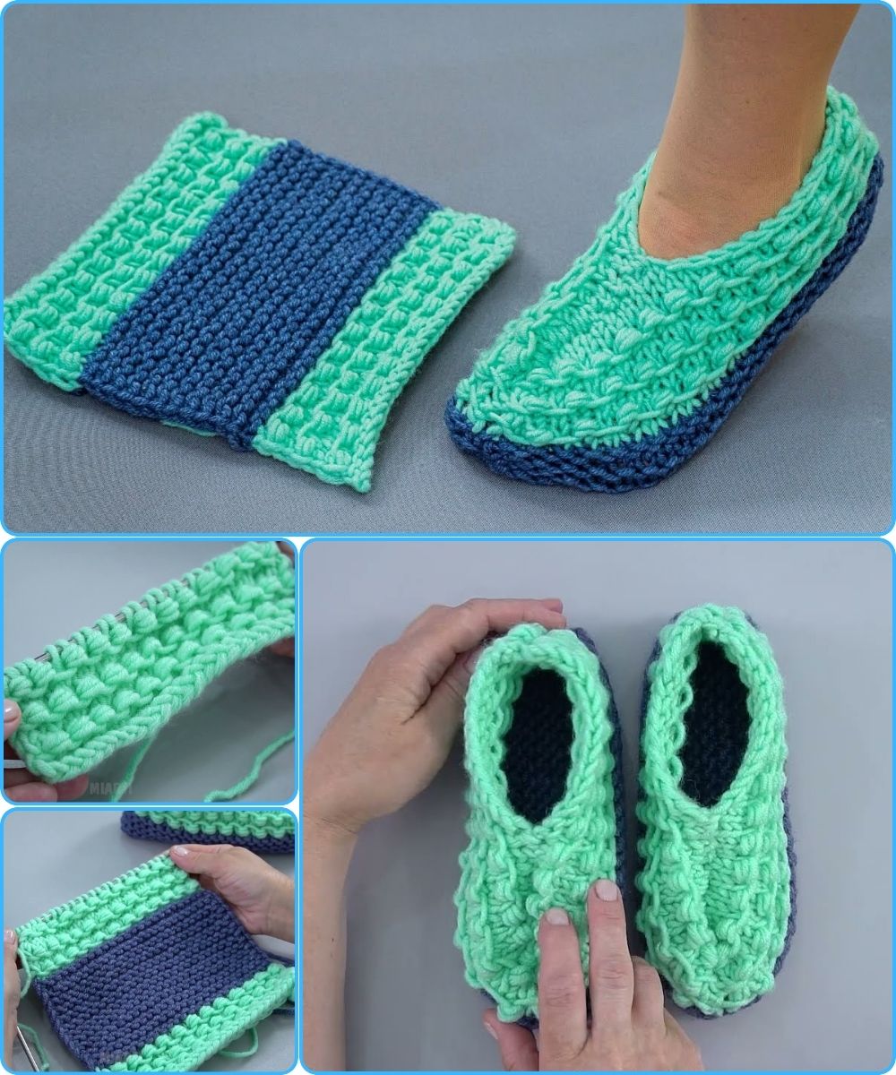 Absolutely! Let’s go step by step. I’ll explain how to make a simple knitted slipper that has no seam on the sole, which makes it comfortable to wear. This is a beginner-friendly project, but I’ll include details so you can visualize it clearly.