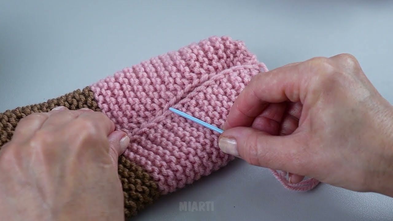 3. Pick up stitches evenly along both long sides and the cast-on edge