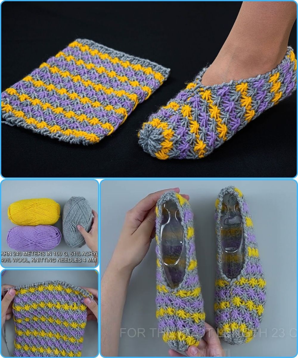 These very easy knitted slippers are cozy, practical, and fun to make. With this simple knitting pattern, even beginners can enjoy successful results and beautiful handmade footwear.