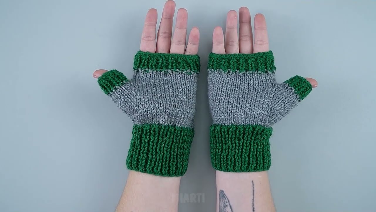 How to Make the Simplest Fingerless Mittens on 2 Knitting Needles