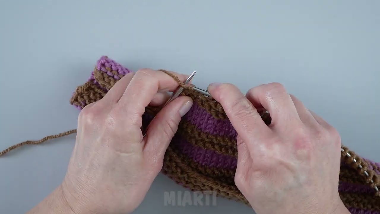 Fold the knitted piece in half with the wrong side inside, so the heel and toe align.
