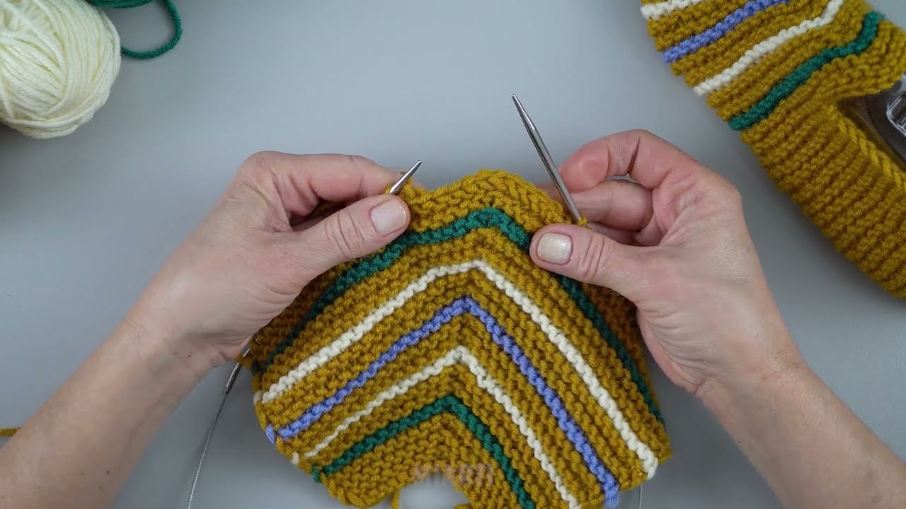 This style is knit mostly flat, then shaped with easy decreases and simple seaming.