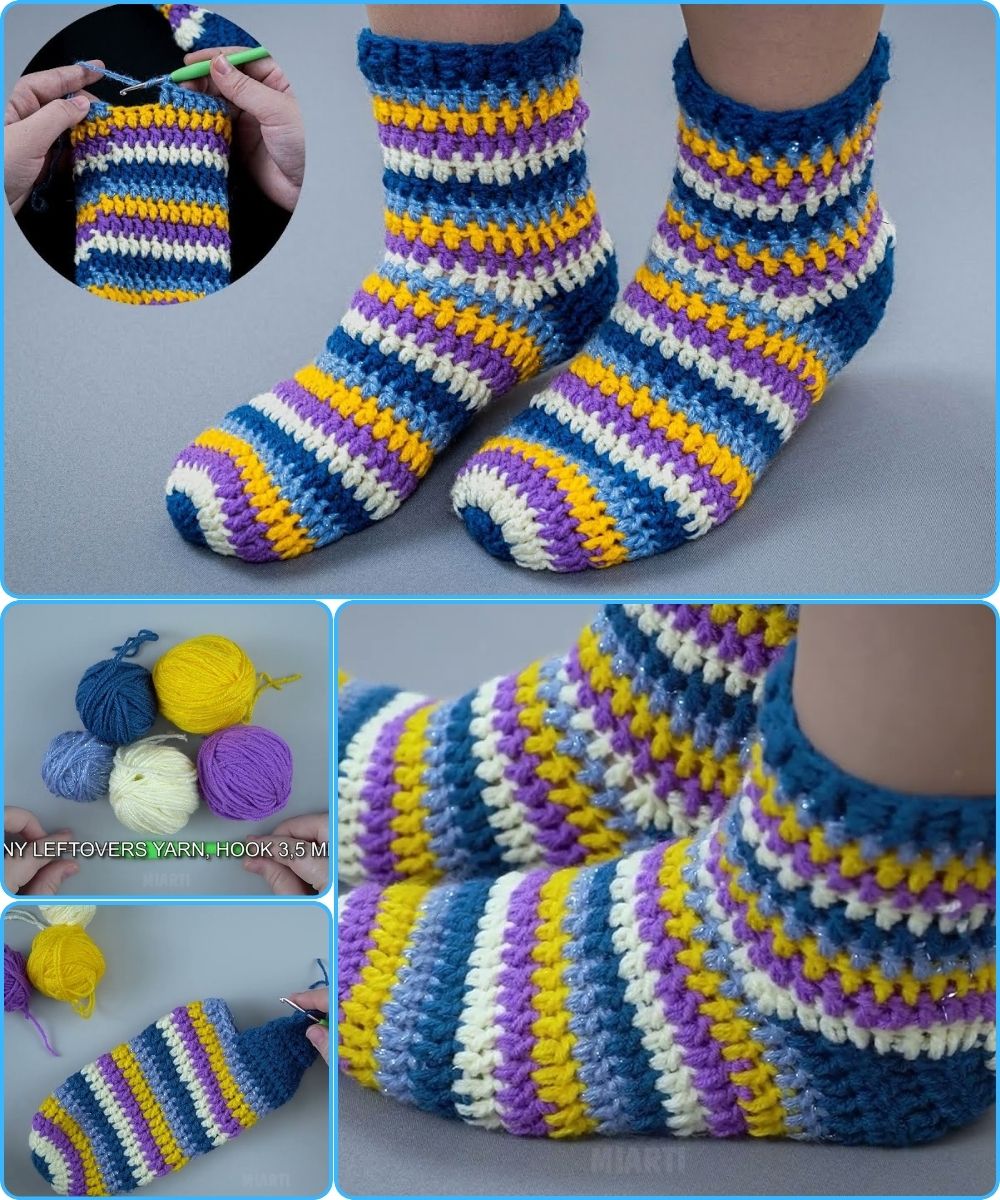 Making easy socks or slippers out of leftover yarn is practical, fun, and beginner-friendly. You can create a cozy, personalized pair without spending extra money or buying new materials.