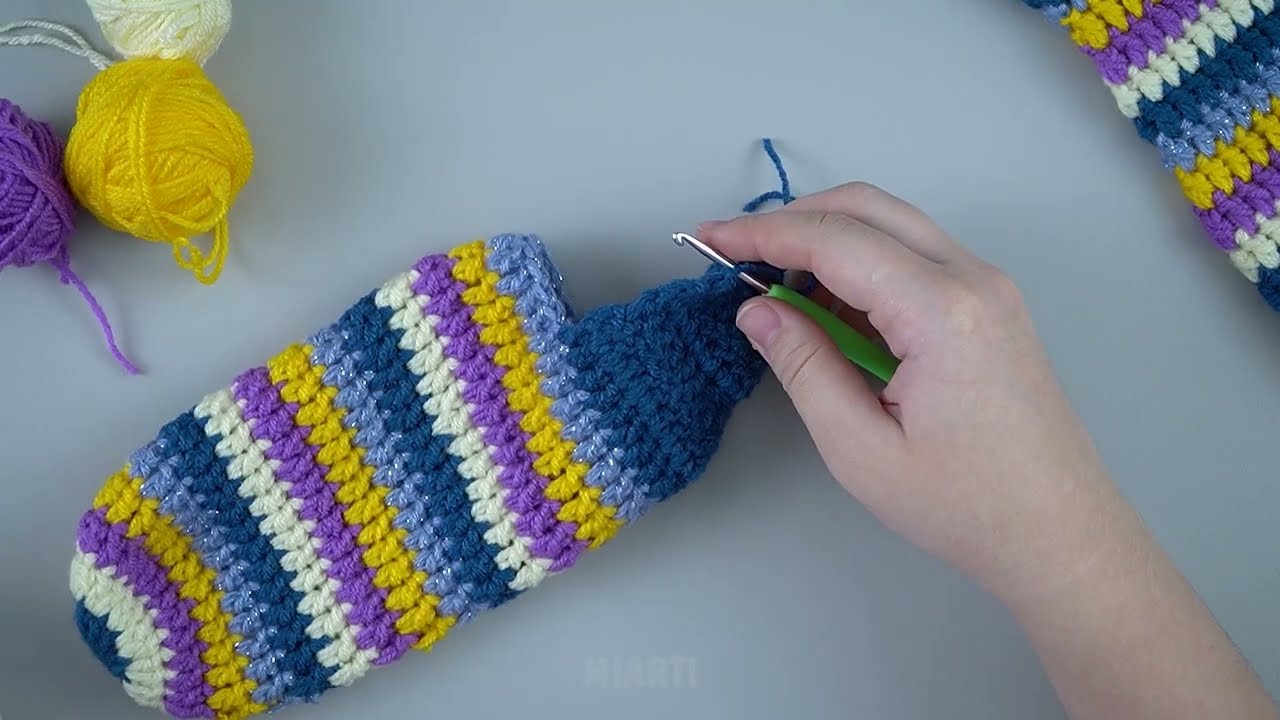 Create fun stripes by alternating leftover yarns.