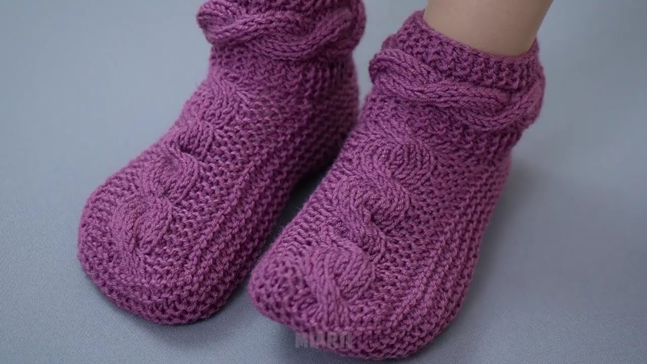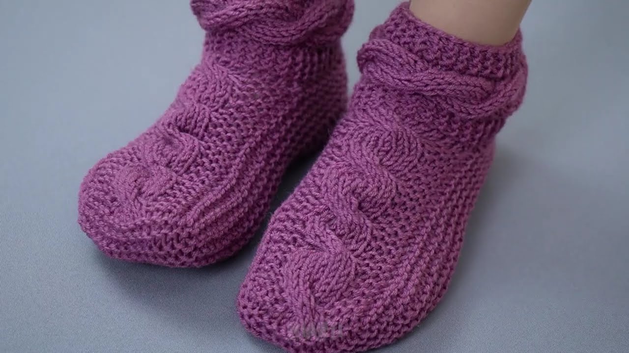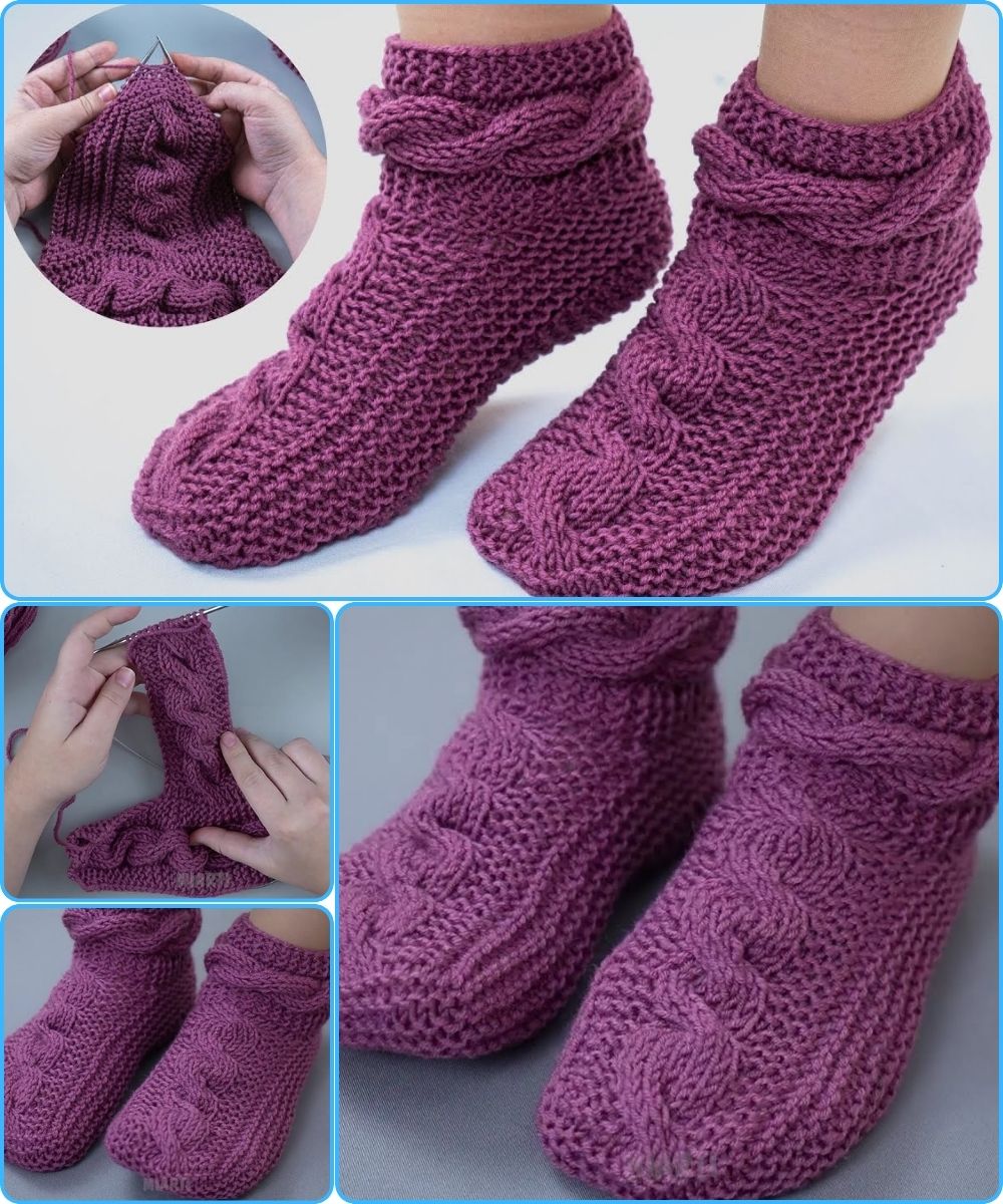 Knitted slippers or socks with a braided (cable) design combine comfort and style. Even if you’re a beginner, you can create a beautiful pair by using basic cables—these are easy to follow and make your slippers look more professional.