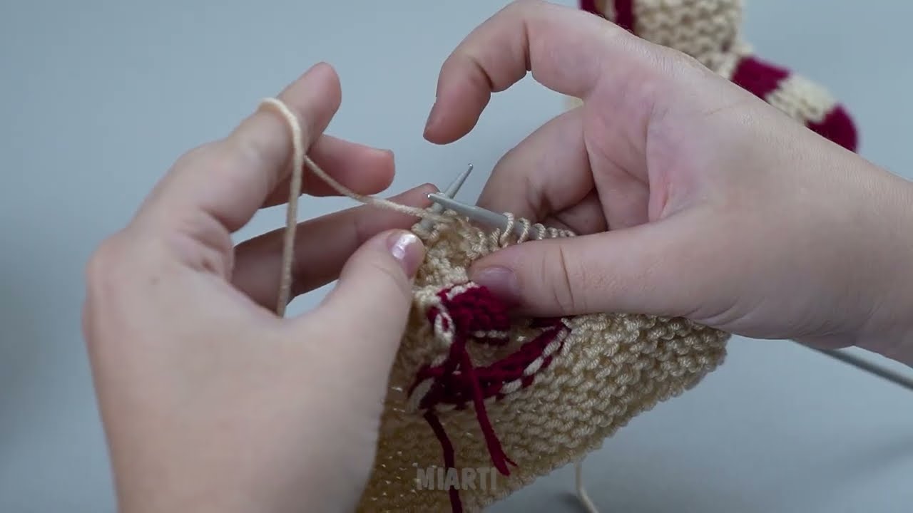 Work in garter stitch (knit every row) for 2–3 cm (¾–1 inch) to form a cushioned sole.