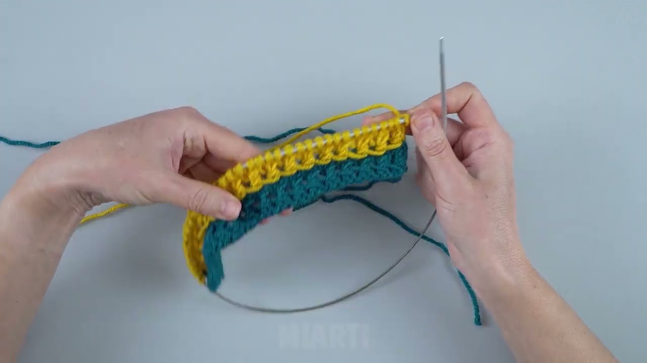 Knit until the piece measures 22–24 cm (8.5–9.5 in) from the tip